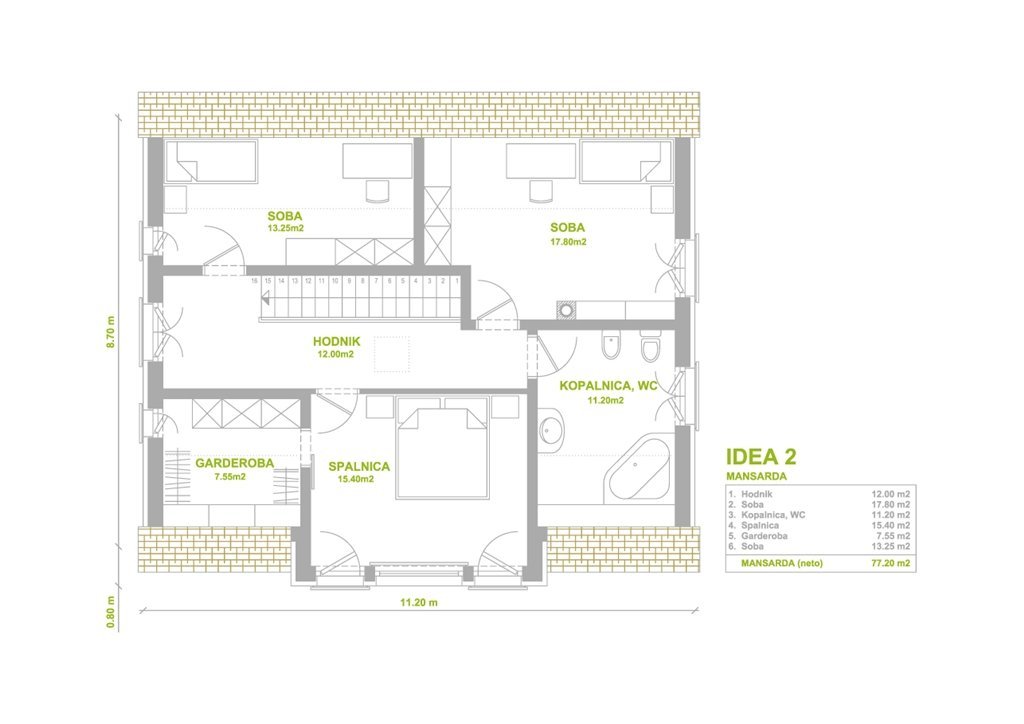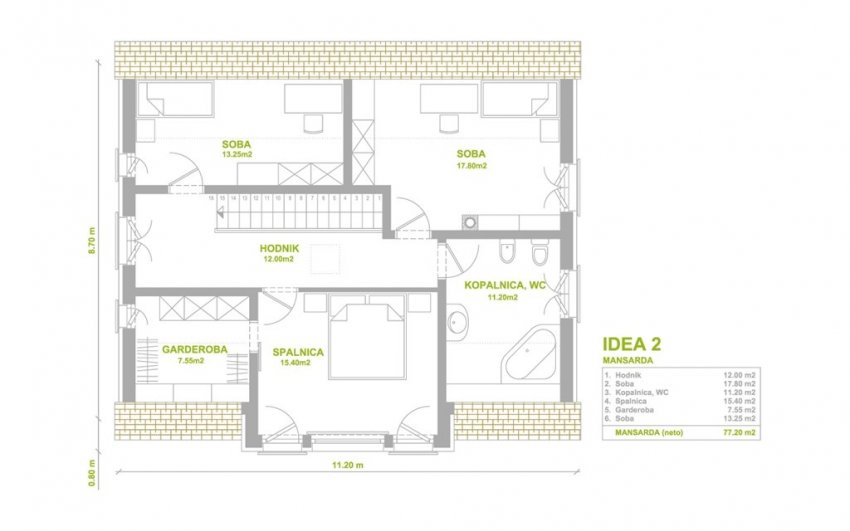 Streha: Dvokapnica, 45º |