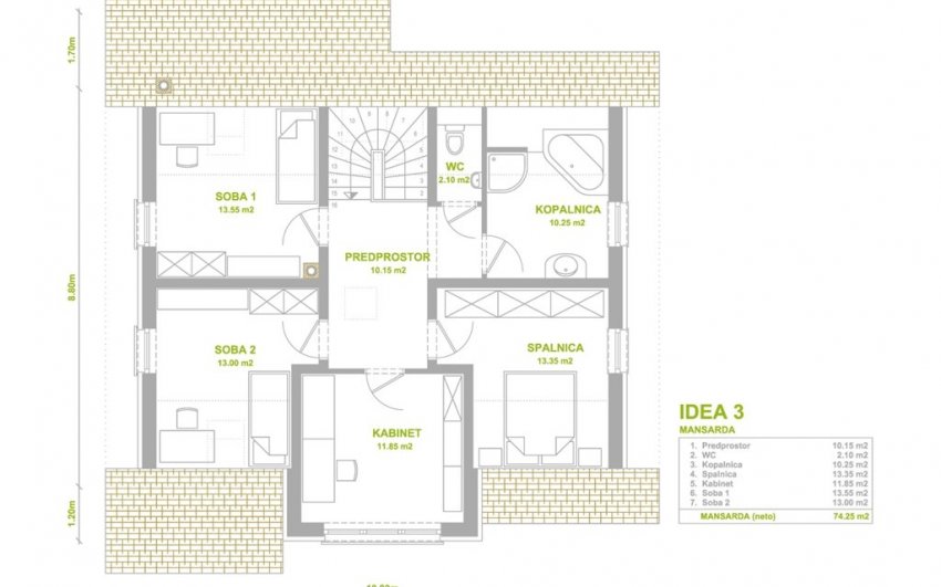 Streha: Dvokapnica, 40º |